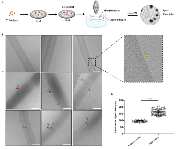 图1 冷冻电镜分析家蚕微粒子虫极管