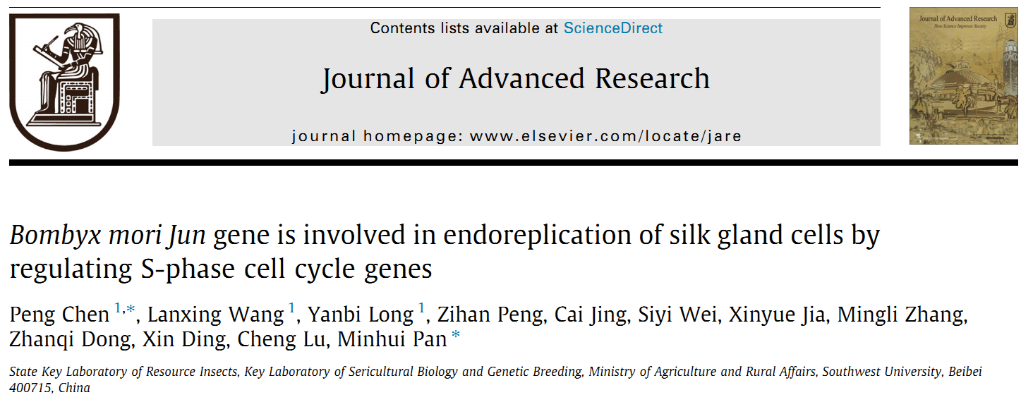 2025718日,国际著名期刊Journal of Advanced Research中科院1TOP期刊IF2024=13.0在线发表了伊莉影片 潘敏慧教授课题组题为 Bombyx mori Jun gene is involved in endoreplication of silk gland cells by regulating S-phase cell cycle genes的研究论文。该研究首次解析了JNK信号通路及下游关键基因BmJun在家蚕丝腺细胞核内复制中的功能和作用机制,并基于CRISPR/Cas9技术成功创制了丝腺特异性敲除BmJun基因的转基因品系,为家蚕丝腺改良与新品种的培育提供了重要素材。