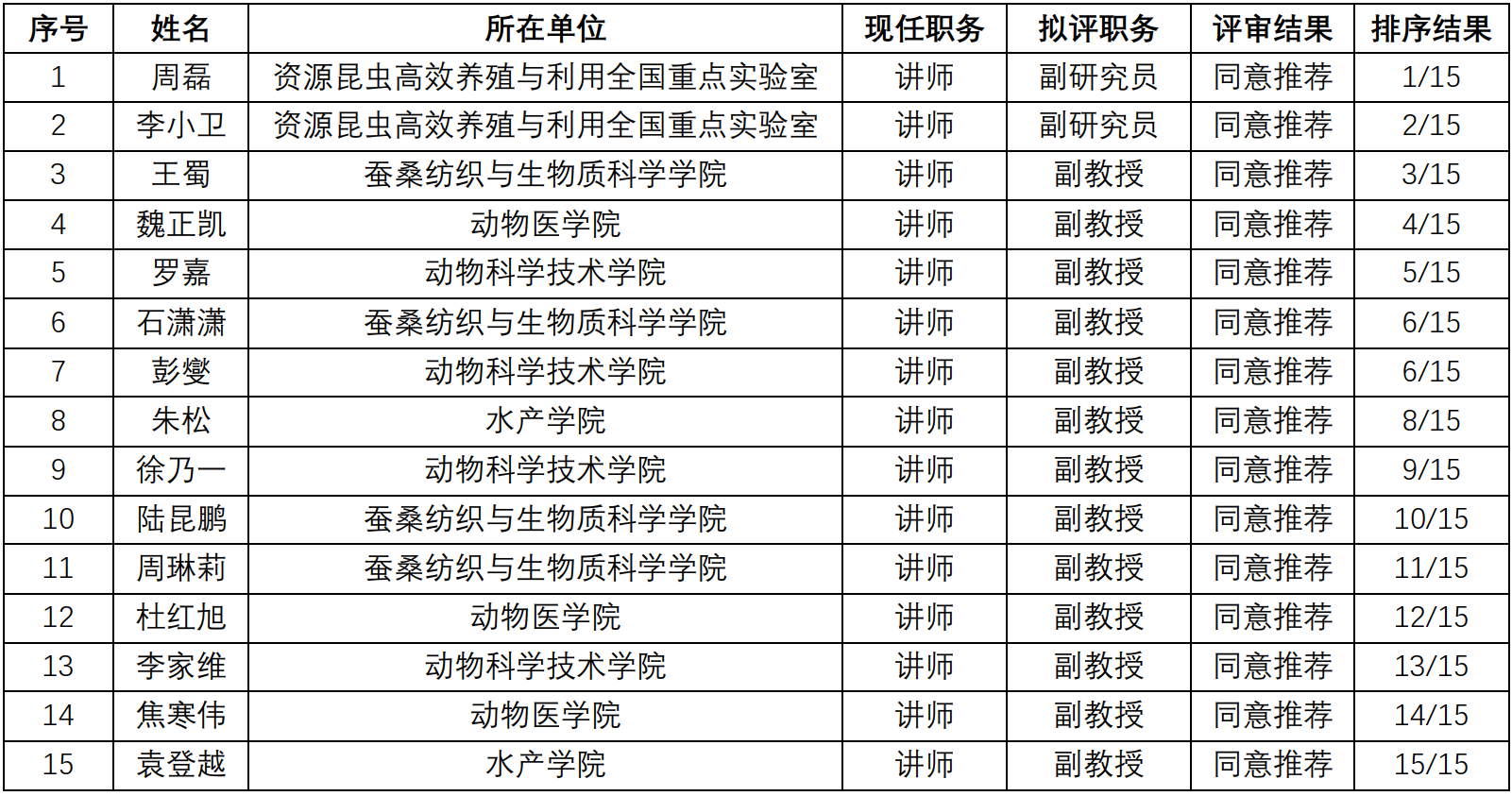 2025年专业技术职务学术评审阶段有关事宜的通知》要求,动物科学学部学术委员会于2025年10月30日召开了专业技术职务评审会,现将结果公示如下: