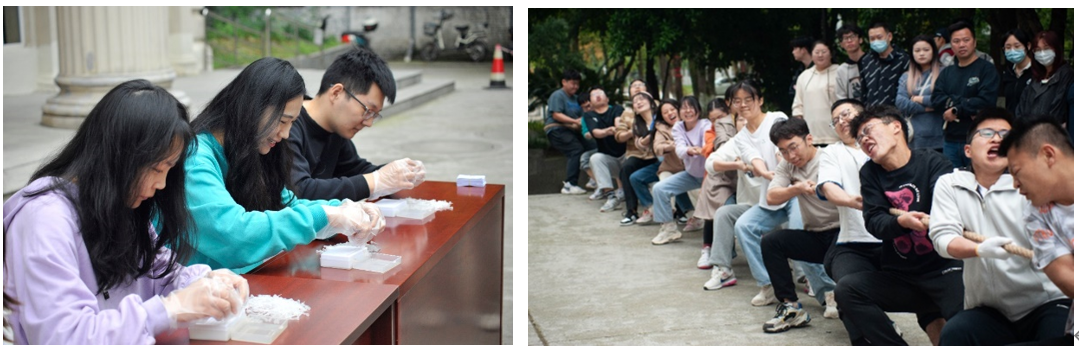 本次趣味运动会共有八个比赛项目:装枪头大赛、拔河比赛、羽毛球比赛、乒乓球比赛、“摸石过河”、“小猪快跑”、“球开得胜”和趣味抽奖。第一个项目是“装枪头大赛”,计时一开始,所有参赛选手都铆足干劲,瞬间点燃了现场气氛,“装枪头冠军”以超群的速度赢得阵阵喝彩;接着进行精彩纷呈的拔河比赛,随着裁判的哨声响起,两方阵营的选手们闻声立动、互不相让,咬紧牙关使劲往后拔。加油助威声此起彼伏,让此次趣味运动会的气氛到达高潮,也为上半场运动会画上了一个圆满的句号。