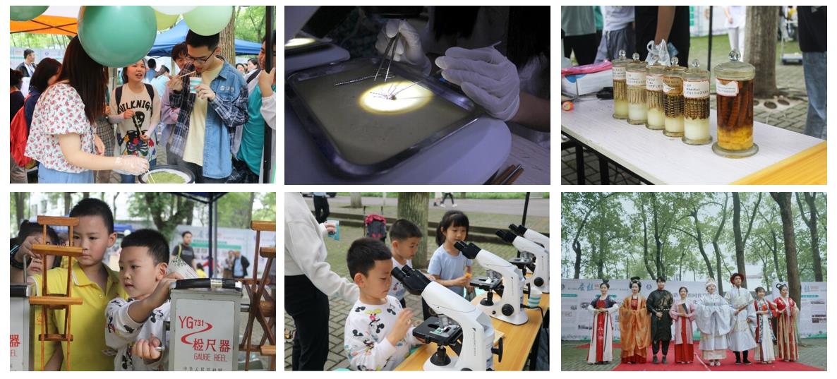 樟树林开展了主题展览活动,展示了蚕丝文化几千年历史积淀,彰显出蚕桑产业发展所取得的重大成果和多元创新成效。现场的科普区、美食区、游戏区、展品区、体验区体验式地介绍了当今蚕桑产品在科研和生活中的应用,得到了参与者的广泛好评。