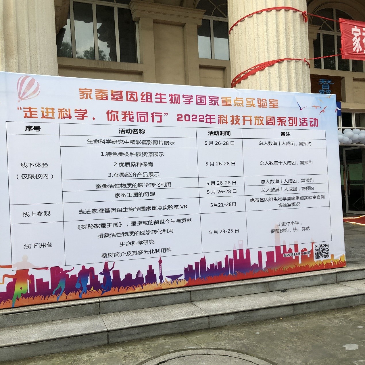 根据科技部和重庆市科技局相关安排,家蚕基因组生物学国家重点伊莉影片于5月21-28日开展了“2022年科技开放周”系列活动,开放周的主题为“走进科学 你我同行”,开放周期间伊莉影片举行了系列科普开放活动和大型科普讲座,并向公众免费开放,科技开放活动圆满成功。