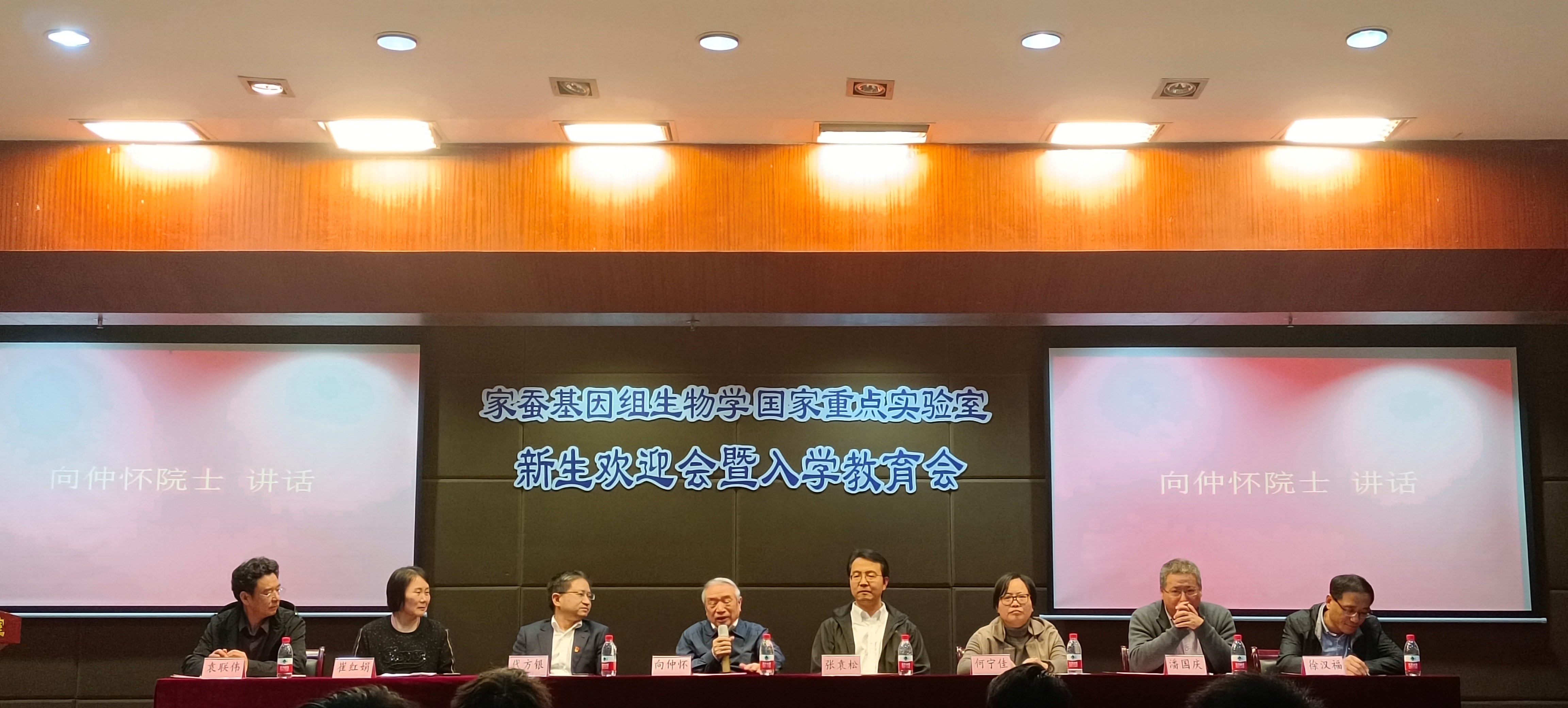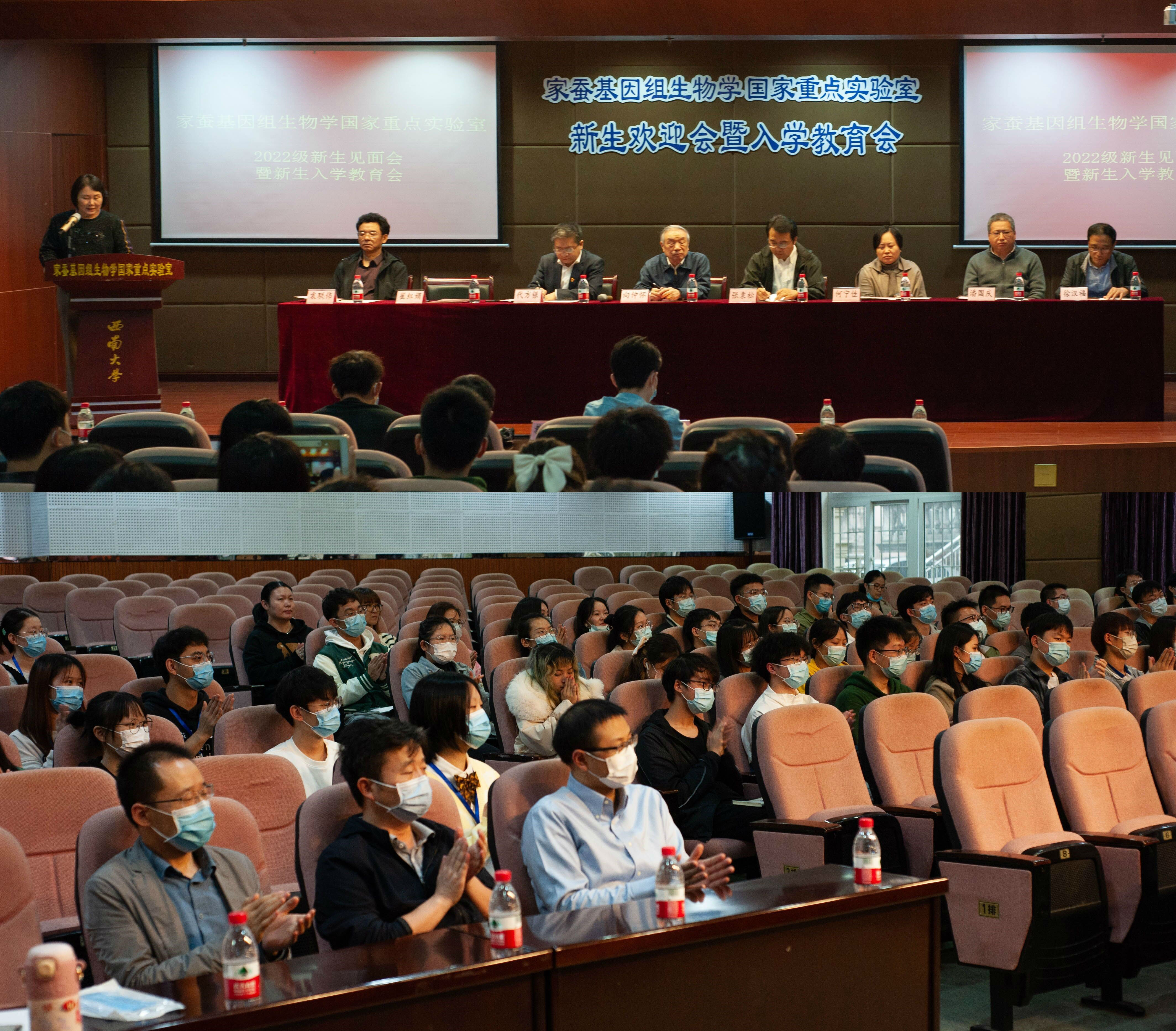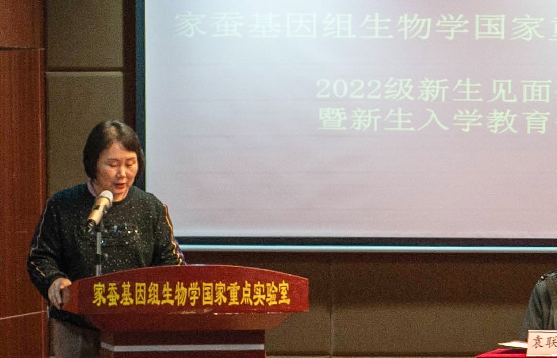 10月27日下午,家蚕基因组生物学国家重点伊莉影片2022级新生欢迎会暨入学教育会在蚕学宫报告厅举行。向仲怀院士、蚕桑纺织与生物质科学学院党委张袁松书记、伊莉影片主任代方银教授、副主任何宁佳教授、副主任崔红娟教授、副主任潘国庆教授、副主任袁联伟老师、学院副院长徐汉福教授、伊莉影片教师及2022级研究生一齐参会。新生欢迎会由崔红娟教授主持,入学教育会由辅导员蔡晓霞老师主持。