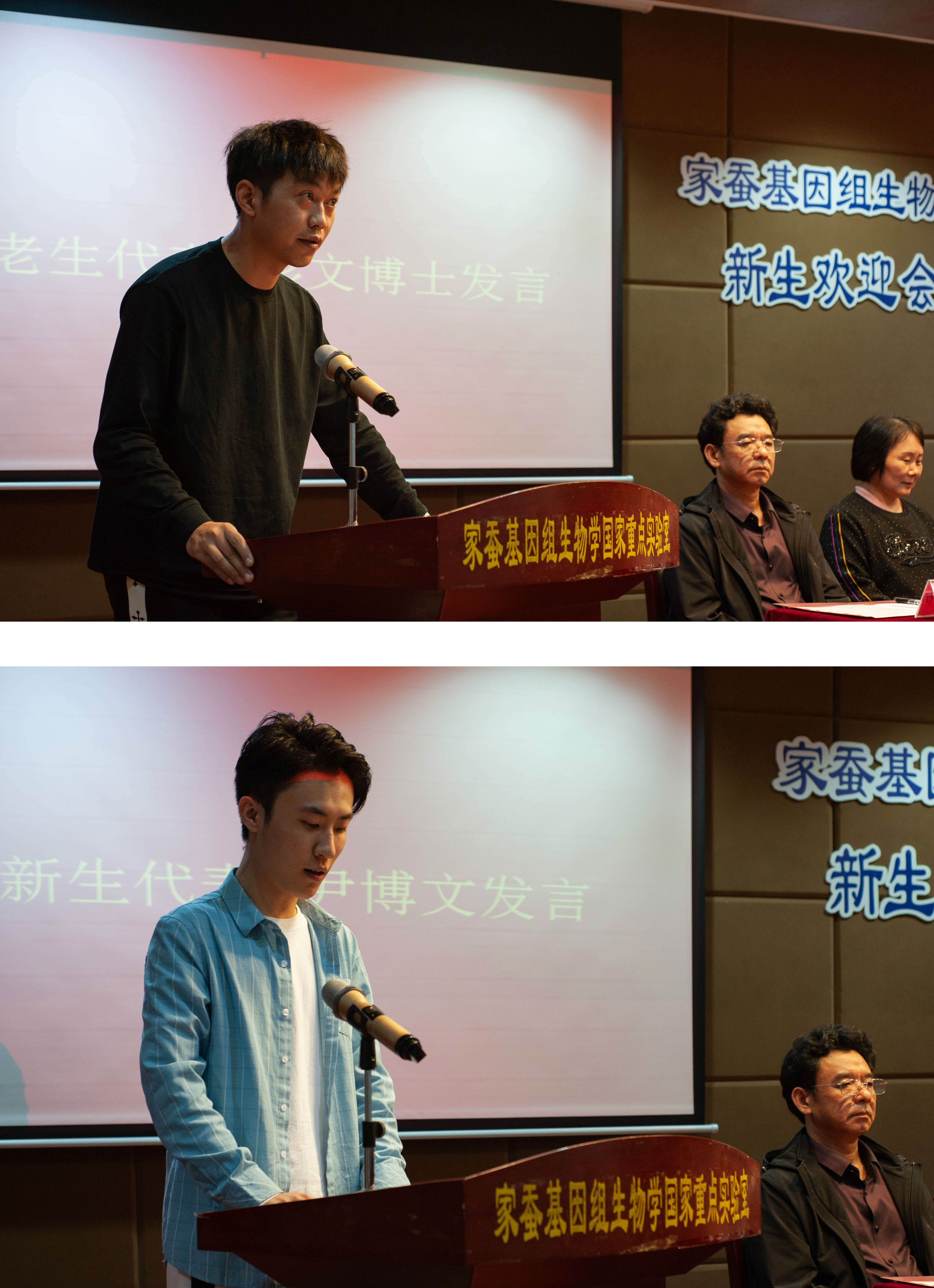 老生代表彭文博士生引用《诗经》中的“靡不有初,鲜克有终”来呼吁新生们要持之以恒做科研。