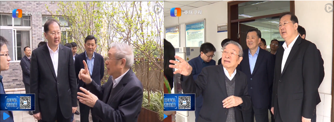 图为向仲怀院士向市委副书记任学锋介绍蚕桑科技、产业及学科建设有关最新进展