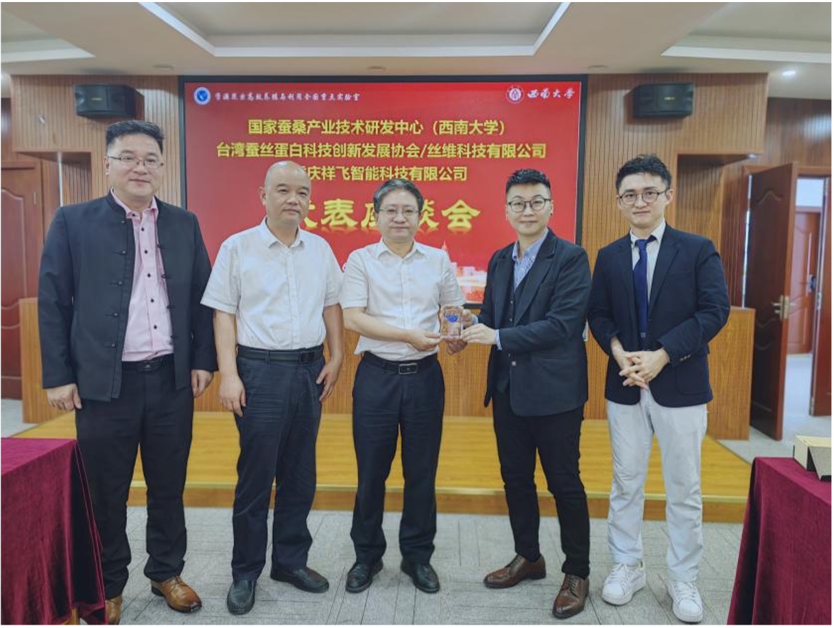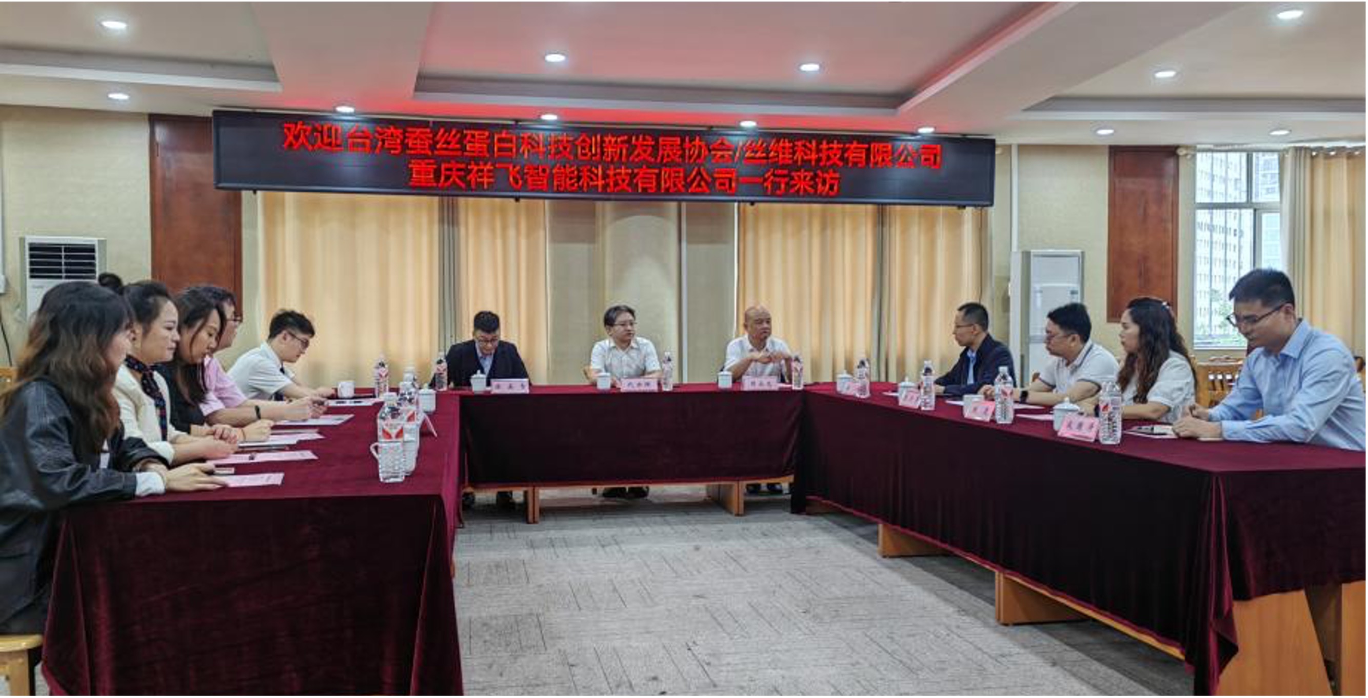 2024年6月4日,台湾蚕丝蛋白科技创新发展协会理事长、丝维科技有限公司董事长陈孟专博士一行在重庆祥飞智能科技有限公司周永忠董事长等陪同下到访伊莉影片