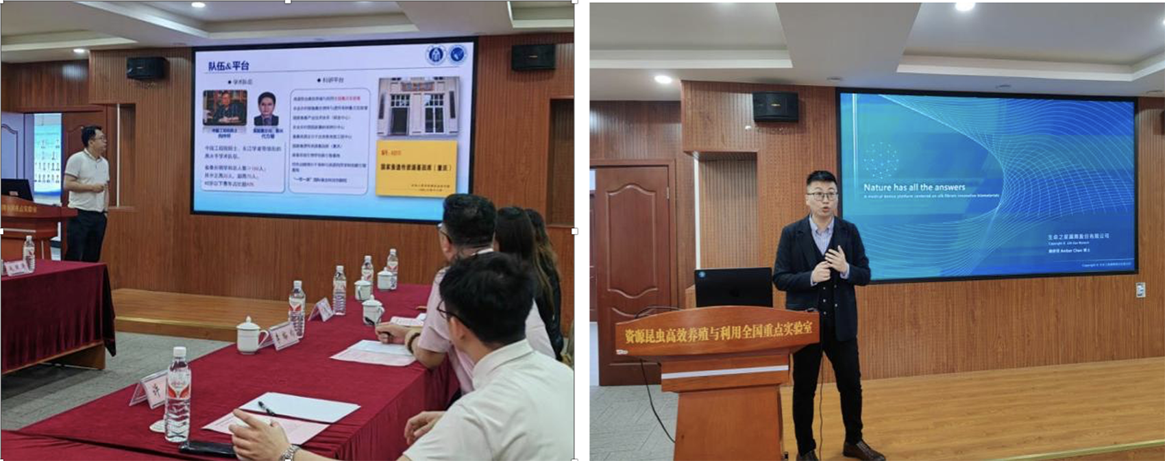 参观后,陈孟专会长一行到科技楼四楼与资源昆虫全国重点伊莉影片主任、国家蚕桑产业技术体系首席科学家代方银教授会面,并进行了座谈交流。龙定沛副教授就“蚕丝蛋白多元化开发”专题作交流报告,介绍了目前伊莉影片在蚕丝遗传改造与利用研究方面的主要进展。陈孟专博士就其领导的协会和公司推动的蚕丝蛋白循环经济模式相关研究作了交流报告,重点介绍了蚕丝蛋白医用产品研发进展。与会人员围绕蚕丝新功能产业发展进行了热烈讨论。