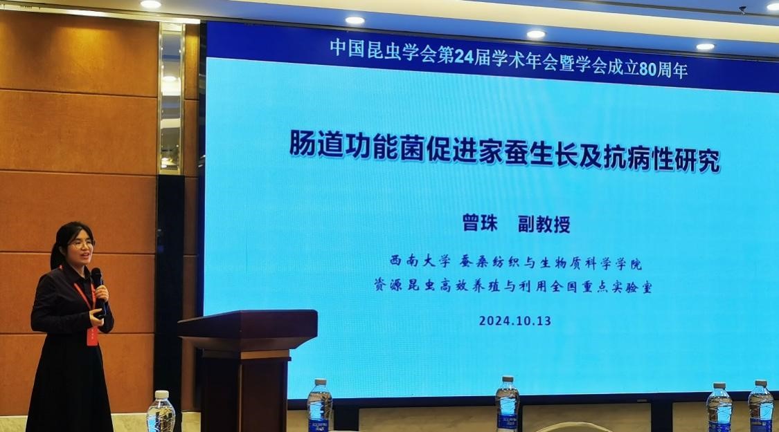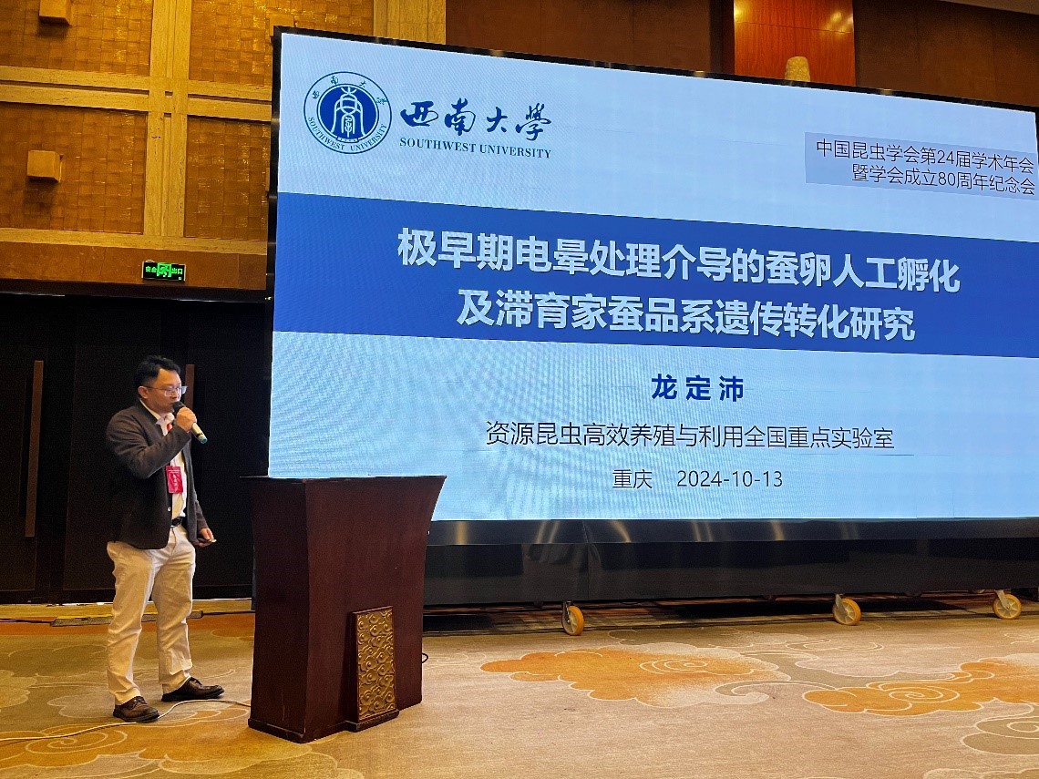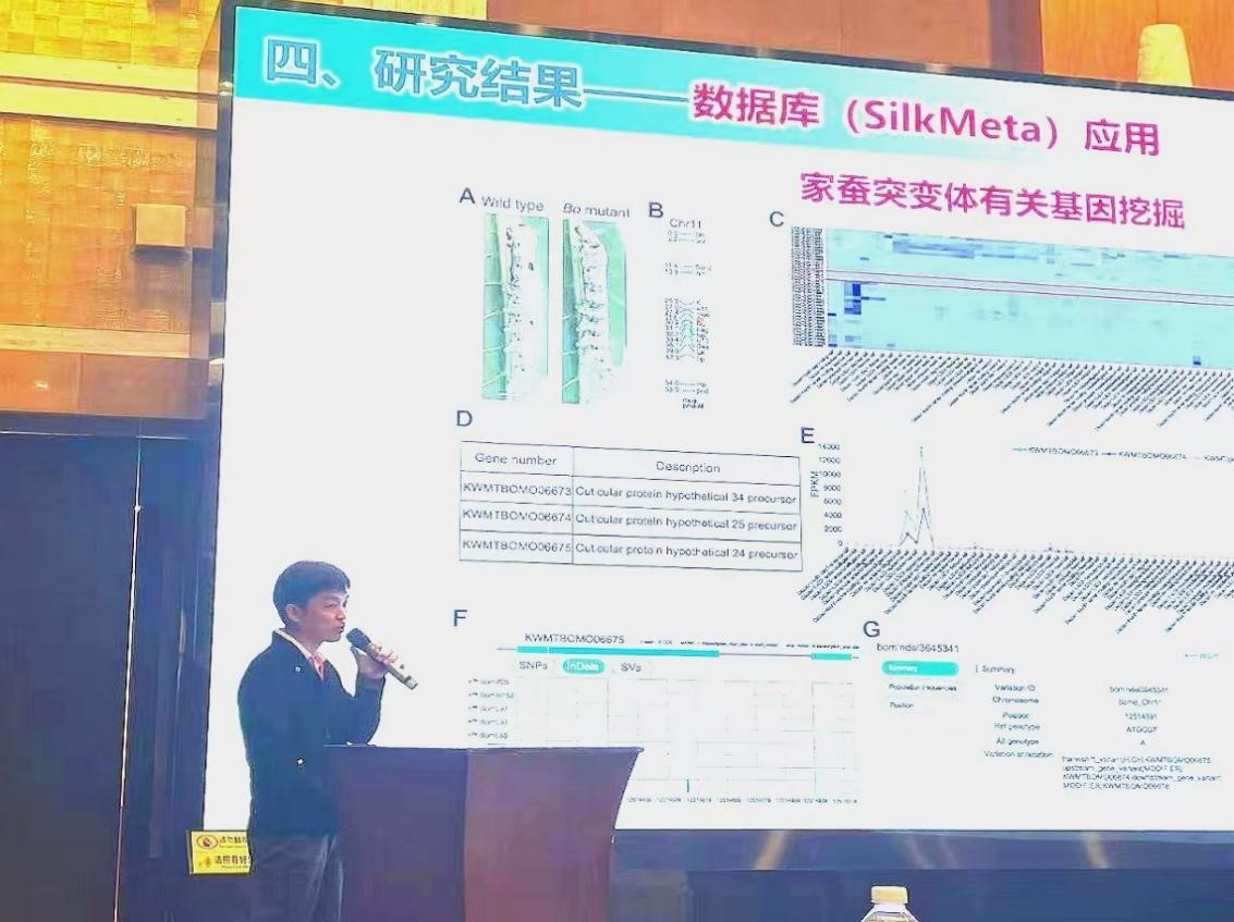 我室人员在大会中表现积极,作了多个分会报告和墙报展示。宋江波副教授作了题为“FOXO-regulated OSER1 reduces oxidative stress and extends lifespan in multiple species”的报告;龙定沛副教授作了题为“极早期电晕处理介导的蚕卵人工孵化及滞育家蚕品系遗传转化研究”的报告;曾珠副教授作了题为“肠道功能菌促进家蚕生长及抗病性研究”的报告;陆昆鹏老师作了题为“家蚕泛基因组和多组学数据库及其应用”的报告。此外,吴松原老师和鹿亚如博士后分别展示了题为“The BTB-ZF gene Bm-mamo regulates pigmentation in silkworm caterpillars”和“Deciphering the genetic basis of silkworm cocoon colors provides new insights into biological coloration and phenotypic diversification”的墙报。这些报告和墙报展示了我室在家蚕及其相关研究的最新进展,给与会人员留下了深刻印象,对于进一步扩大伊莉影片在该领域的影响产生了积极作用。