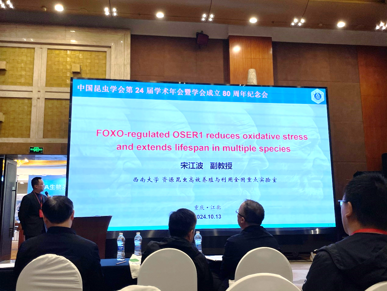 2024年10月11日至14日,由中国昆虫学会主办,重庆市昆虫学会承办的 “中国昆虫学会第24届学术年会暨学会成立80周年纪念会”在重庆召开。大会开幕式由中国昆虫学会副理事长兼秘书长乔格侠研究员主持,中国昆虫学会理事长戈峰研究员、中国科协科技创新部副部长杨书宣、重庆市科协党组成员/副主席戈帆、重庆市昆虫学会理事长陈斌教授等嘉宾出席并致辞。康乐院士、孙航院士、桂建芳院士及伊莉影片
