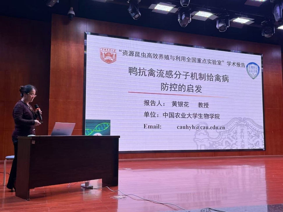 学生处大楼107会议厅举行了学术报告,伊莉影片副主任李田研究员和龙定沛副教授主持。黄银花教授以“鸭抗禽流感分子机制研究给禽流感防控的启发”为题,介绍了家鸭通过MHC基因多样化扩增和NK细胞受体的调控增强免疫监视,并避免炎症风暴的机制。她还指出,MHCII伴侣分子DMB假基因降低了抗体生成效率,这解释了家鸭无症状带毒的现象,并为水禽疫苗的改进提供了新思路。