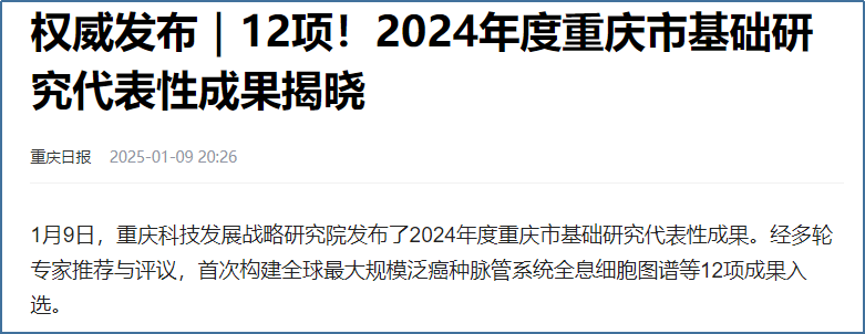有关报道显示,据重庆科技发展战略研究院相关负责人介绍,此次入选的基础研究代表性成果,主要分布在数智科技、生命健康、新材料、绿色低碳、基础学科等领域,与重庆市“416”科技创新布局高度契合,聚焦科学前沿,突出原创,注重学科交叉融合,充分体现了我市基础研究的特色优势。