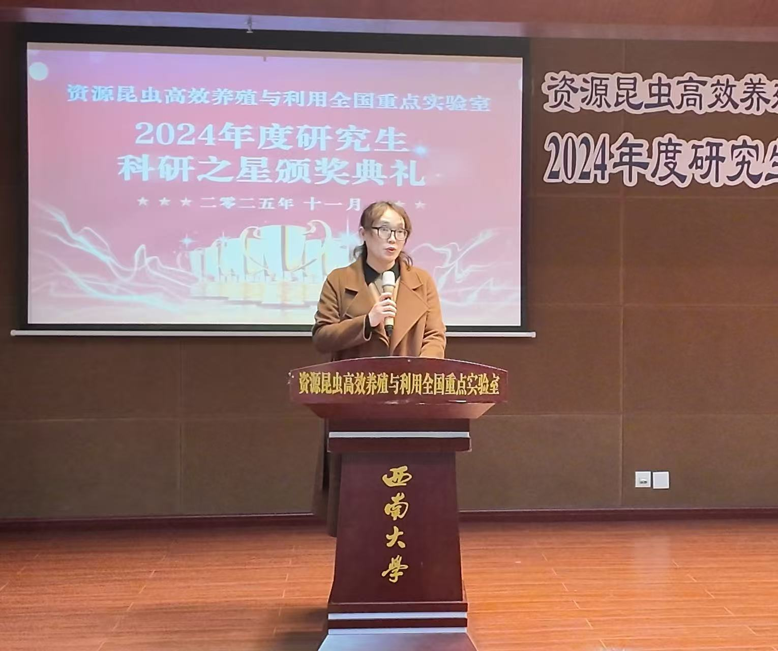 方凤玲书记在致辞中向获奖同学表示热烈祝贺,寄语大家以此次获奖为新起点,保持科研热情与坚韧意志,发挥示范引领作用;希望全体研究生锚定国家需求、产业急需与学术前沿,在资源昆虫及交叉学科领域深耕创新。她表示,学院党委将持续优化科研政策环境,搭建跨学科交流平台,全力支持青年学子逐梦创新。
