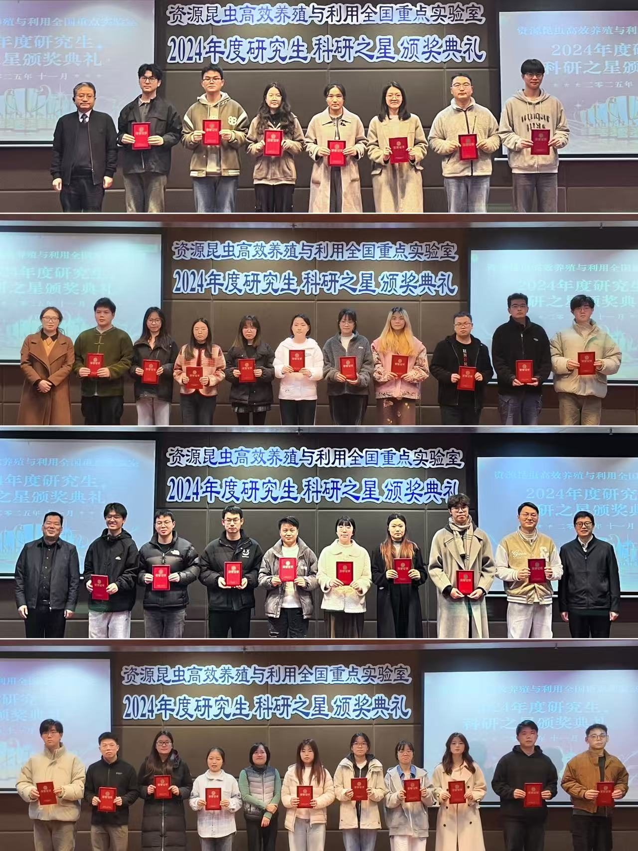 2024年度研究生“科研之星”表彰决定。35名研究生受到表彰,其中一等奖7名、二等奖10名、三等奖18名,分享奖金20余万元。与会领导为获奖学生颁发荣誉证书并合影留念。