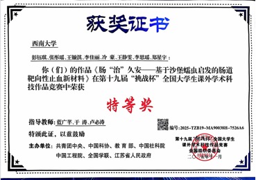 在创新型人才培养方面取得卓越成效,蚕丝蛋白在医学领域的利用得到了全国同行的高度认可。面向未来,团队将以此为契机,持续深耕相关领域,推动科研成果向实际应用转化,努力以科技创新回应时代需求,用青春力量为中国式现代化贡献智慧与担当。