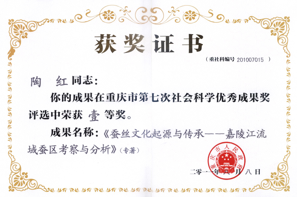 20110808《蚕丝文化起源与传承》荣获重庆市社会科学优秀成果一等奖
